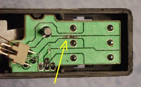 Erstmal aus der Heckklappe ausbauen, und mit einem spitzen Messer vorsichtig den Deckel abtrennen, dann irgendwann hochbiegen und abschneiden. Nicht verbiegen, denn der muss da wieder drauf ! Die gesprengte Leiterbahn sieht man sofort und ist mittels einem aufgelötetem Stückchen Draht schnell geflickt. Den abgetrennten Deckel je nach Belieben mit Heisskleber, Silikon oder einfach nur mit Isolierband anbringen und den Stellmotor wieder einbauen.
